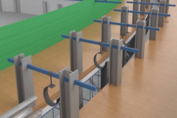 河北新彭楠焦化有限公司 251 万吨/年焦化产能整合及减量项目部和安徽珍珠水泥集团股份有限公司4000t/d新型干法水泥熟料生产线项目部,依托项目大直径预应力筒仓施工,成立了专门的课题实施小组,利用AotoCAD、Revit等软件,进行BIM建模分析,确定改进方向,最终创新技术方法进行施工。在大直径预应力筒仓钢绞线施工时,钢绞线柔软且易穿出库壁,项目部利用直径10mm薄壁钢管作为轨道提前进行埋设固定,解决了钢绞线在滑模施工时穿设出轨的问题,同时又减少了人工,加快了施工速度,在保证安全的前提下降低了施工成本。在此基础上,项目部改进现有穿束作业工艺,采用双向机械化穿束技术,结合行程触碰限位器精准控制穿束长度,大幅缩减了穿束时间,简化了流程,降低了人力投入,减小了滑模平台的承载力,提高了安全性。